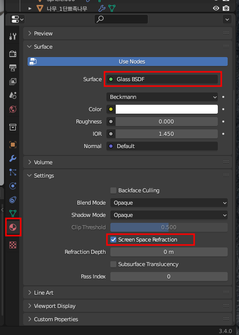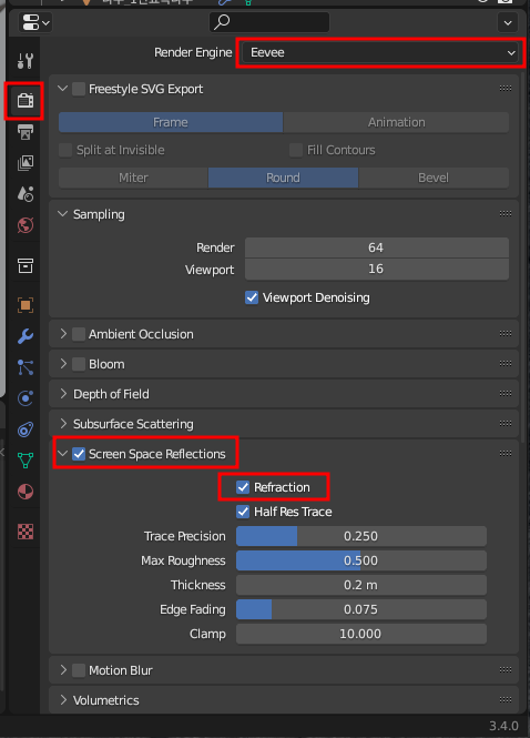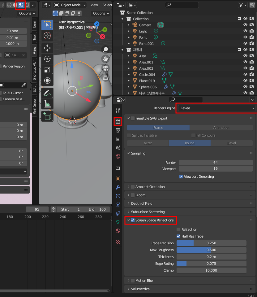스크린 스페이스 리플렉션 설정