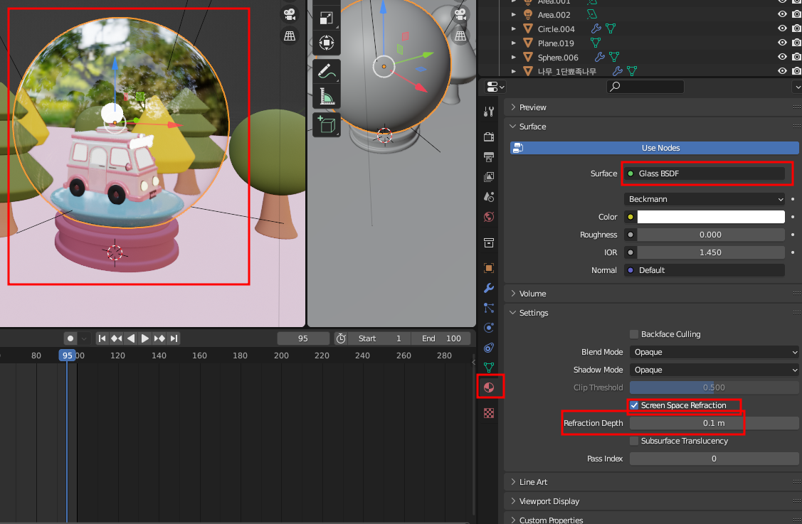 스크린 스페이스 리플렉션을 켜줘야함